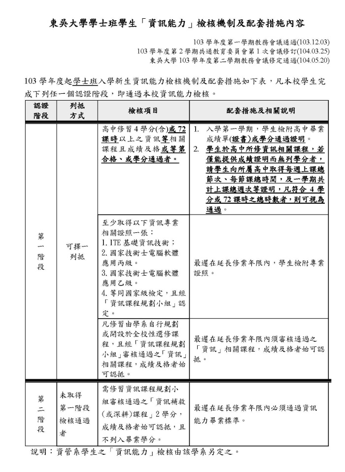 【公告】東吳大學學士班學生「資訊能力」檢核機制及配套措施內容