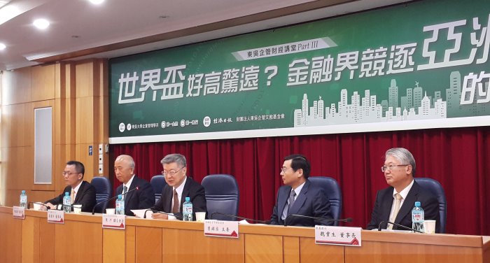 東吳大學企業管理學系於2015年11月11日(週三)舉辦「東吳企管財經講堂」,第三場次主題是《世界盃好高騖遠?金融界競逐亞洲盃的前景》,由東吳大學法商講座教授陳冲擔任主持人,企管系劉美纓教授擔任引言人,邀請金融監督管理委員會曾銘宗主委、第一金控蔡慶年董事長、凱基銀行魏寶生董事長,以及渣打國際商業銀行陳銘僑總經理,探討臺灣金融體系如何催生亞洲區域銀行,臺灣金融業的利基在哪裡?而主管機關又應如何規劃因應?
