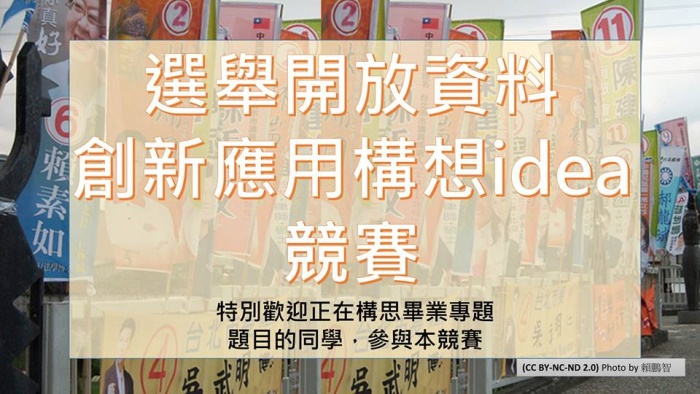 本項活動的目的,在於鼓勵各界大專校院資訊相關科系學生善用中選會公布的open data。本次競賽,重點在於應用構想,而非撰寫系統或App。參賽時,不需要完成系統。