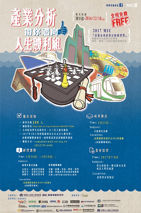 今年,MIC將再深化產業分析的方法論課程,搭配貼近產業需求的重要議題,例如物聯網、智慧城市、金融科技、機器人等產業領域。期許這群經歷MIC培訓課程的熱血青年,能成為帶動國家產業發展的新世代中堅青年。