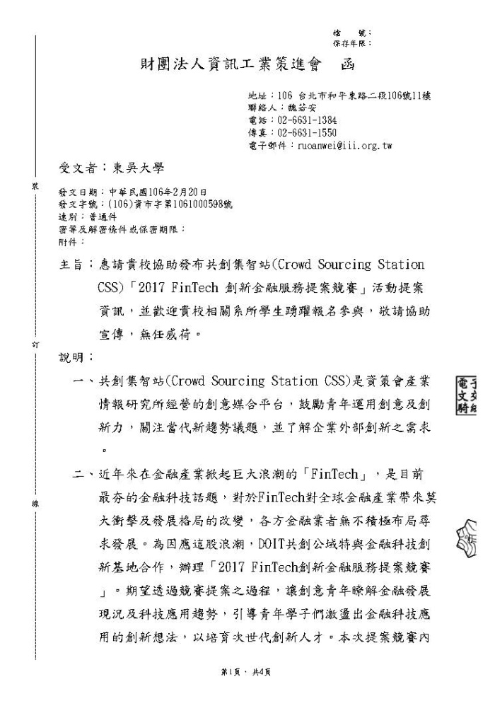 共創集智站(Crowd Sourcing Station CSS)「2017 FinTech 創新金融服務提案競賽」活動提案,歡迎師生踴躍報名
